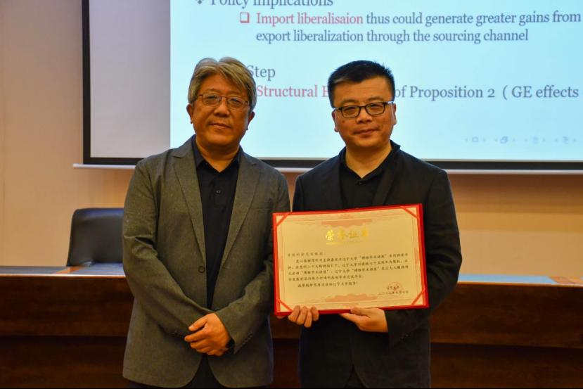 俞志宏教授以Trade Liberalisation, Sourcing capability and Multi product Firms为题,通过分析中国企业的进出口数据,实证发现,在面对出口自由化程度增强时,多产品公司的采购能力对其产品的生产选择和产品结构的调整起到了至关重要的作用。中国加入WTO使得贸易政策不确定性降低,企业开拓、出口新产品的意愿明显上升。与此同时,企业从出口市场中撤回现有产品的趋势也大幅下降。这种变化在那些与企业原有投入结构更为相似的产品上,以及高收入出口市场中更为显著。俞教授的研究立足于企业层面的比较优势理论,重点关注企业采购能力这一重要渠道,为已有文献做出了重要补充和拓展。俞志宏教授通过精彩生动的语言、高屋建瓴的视角、深刻独到的观点,为辽大师生带来了一场主题明确、内涵丰富、与时俱进的学术盛宴。